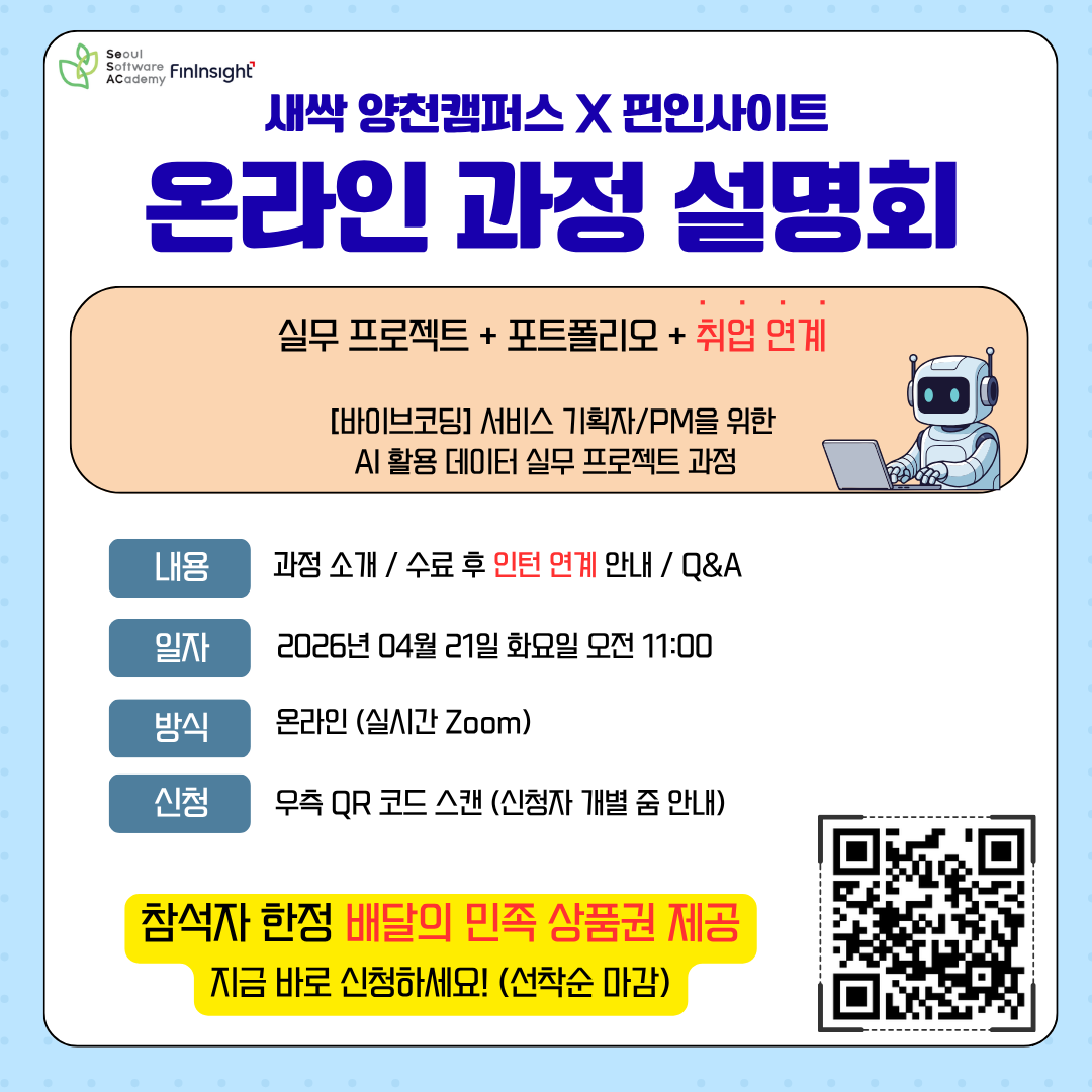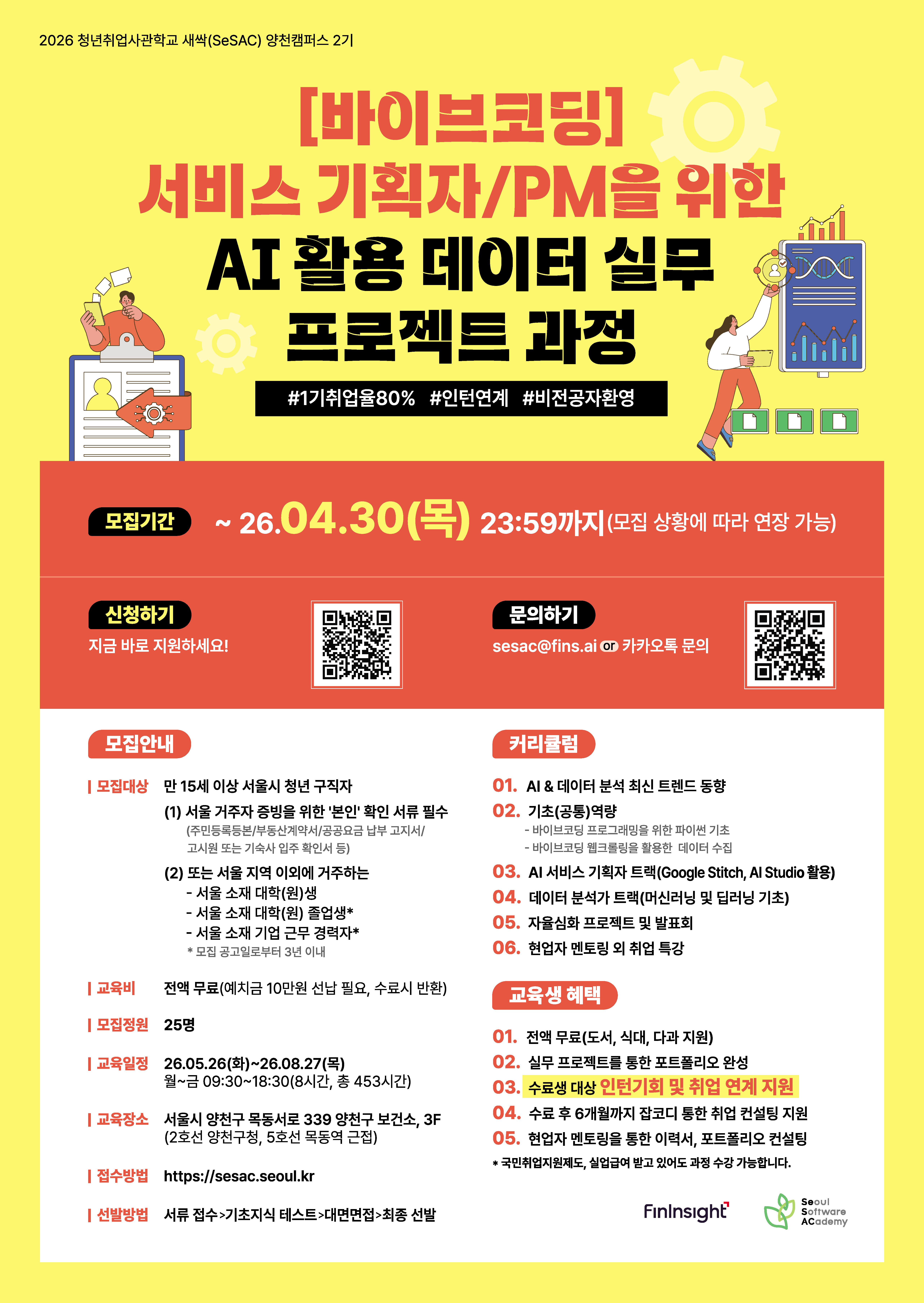 [학생] AI·데이터·PM 취업 연계 무료 교육과정 안내 (양천캠퍼스 2기)